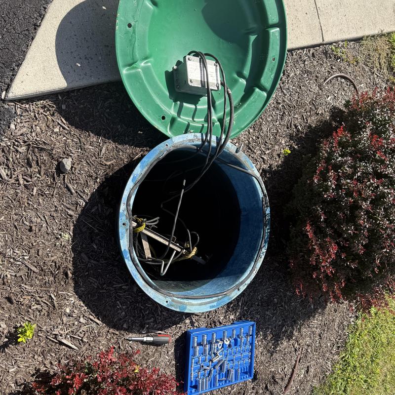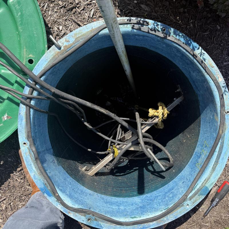 Drainmen Plumbing Inc repaired a stuck sewer injector pump float in Chester Springs, Pennsylvania. The team identified the float as the cause of continuous pump operation, released it, and secured it in place to restore normal function.