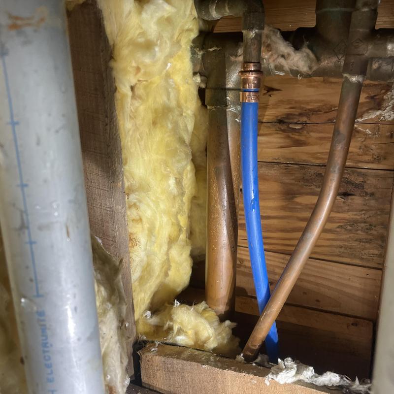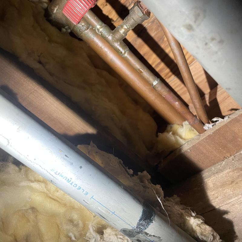 Drainmen Plumbing Inc replaced a damaged cold water supply line to a second-floor bathtub with new PEX piping in Pottstown, Pennsylvania. Technicians removed six feet of old copper pipe and connected the new line. The system was tested after installation and confirmed to be working correctly.
