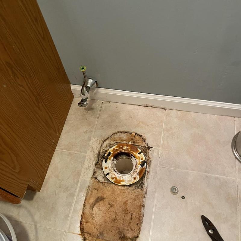 Drainmen Plumbing Inc replaced a damaged downstairs toilet in Norristown, Pennsylvania. The existing toilet had a faulty seal and was unsteady. Technicians removed the unstable unit and secured a new toilet to ensure proper function and fit.