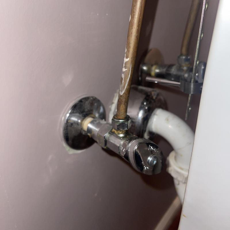 Drainmen Plumbing Inc replaced two leaking shut-off valves under a bathroom toilet in Coatesville, Pennsylvania. The plumber installed new valves and confirmed proper water flow and no leaks after restoring service.