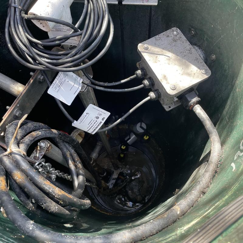 A plumber in Collegeville, Pennsylvania repaired a sewage pump system. The team resealed a pit-less adapter, secured loose electrical wiring above water level, and reanchored a floating primary float. These steps restored correct pump function and helped prevent wiring damage or float misalignment.