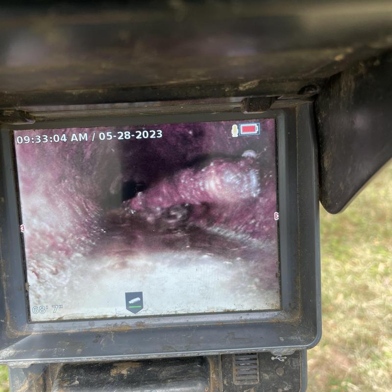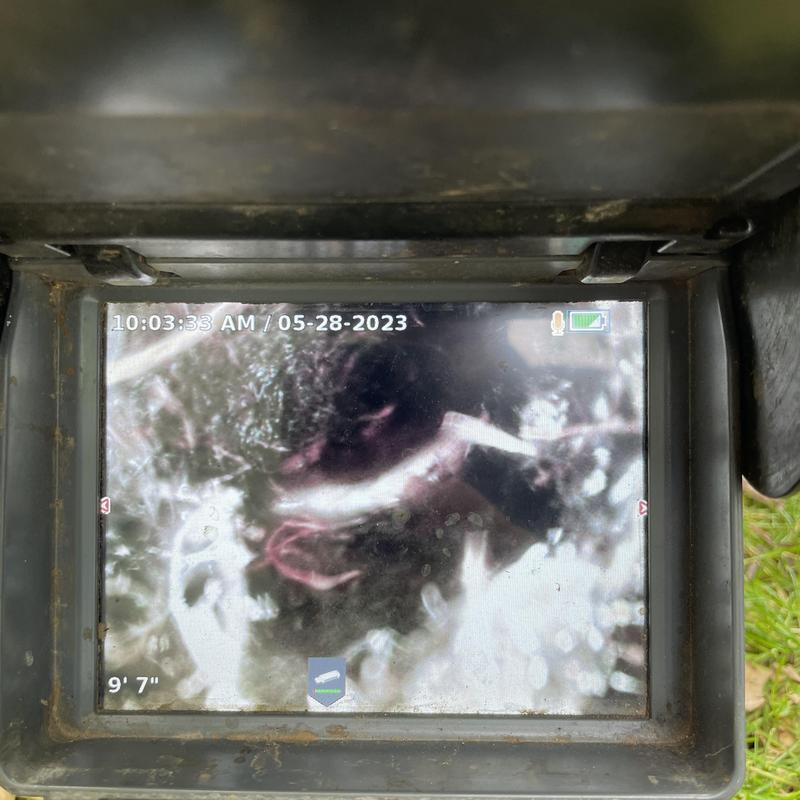 Drainmen Plumbing Inc inspected a slow-flushing toilet in Collegeville, Pennsylvania. Technicians found severe root intrusion in the sewer line and a broken snake cable lodged outdoors. They jetted the line to restore flow but determined that approximately 15 feet of damaged pipe must be replaced to fully correct the issue.