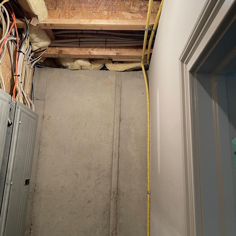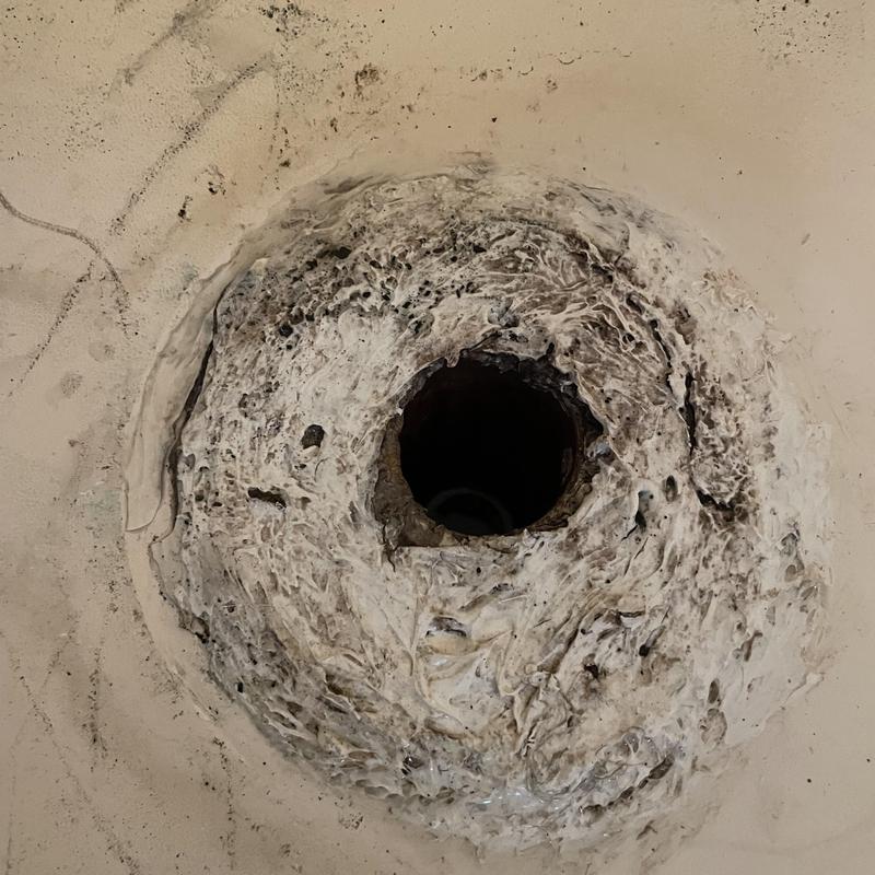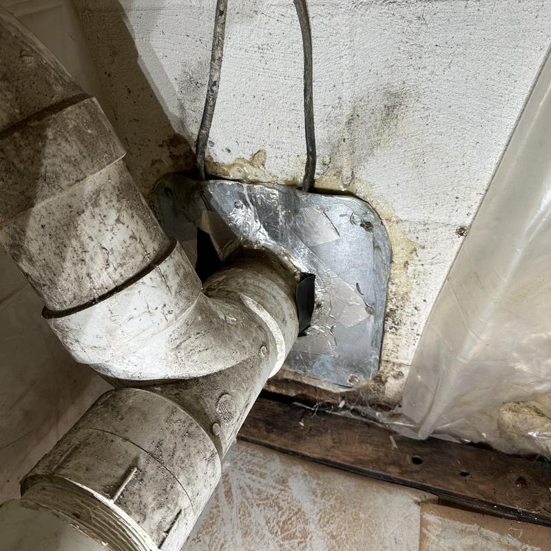A technician sealed a foundation leak where the sewer line entered the home using hydraulic cement. This repair addressed water intrusion at the pipe entry point. Service performed in Phoenixville, Pennsylvania.
