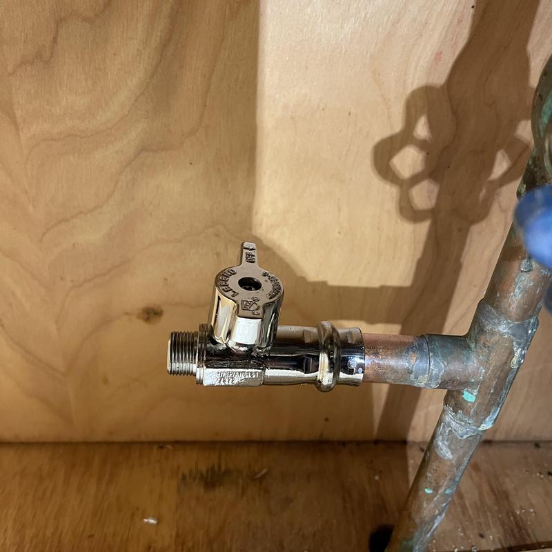 A plumber in Royersford, Pennsylvania replaced a damaged basement hose bib and a seized CPVC shut-off valve. The team installed a new Prier frost-free hose bib and a 12-inch SharkBite shut-off valve to stop leaking and restore full water control. The system was tested and confirmed to be working properly.