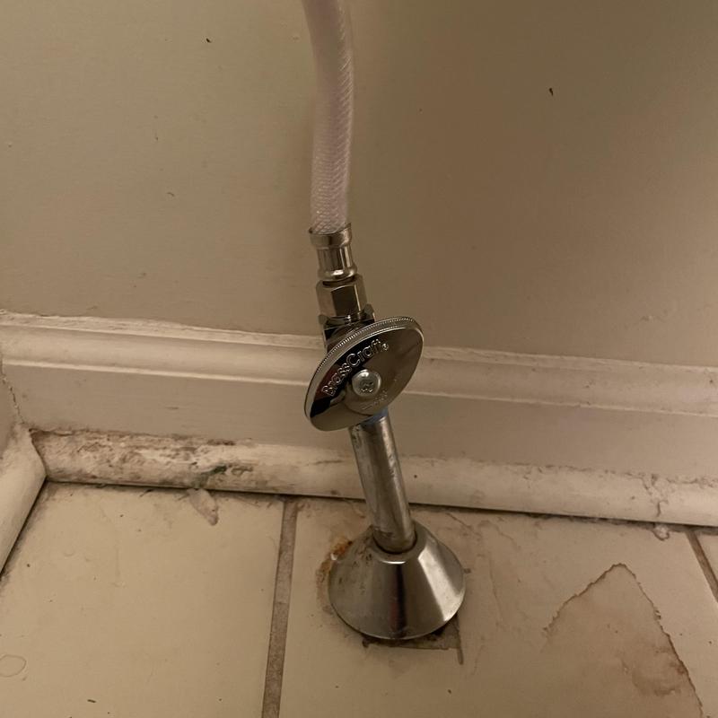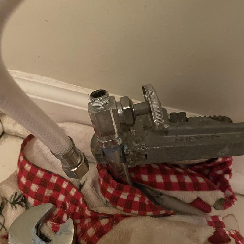 A plumber replaced a leaking toilet shut-off valve and a damaged ice maker water line in Pottstown, Pennsylvania. The toilet leak originated from the valve, and the ice maker line was replaced from the fridge to the cabinet. Both issues were resolved and tested for proper function.