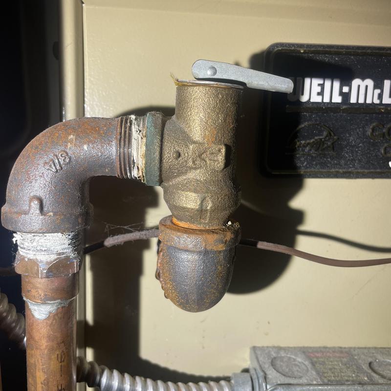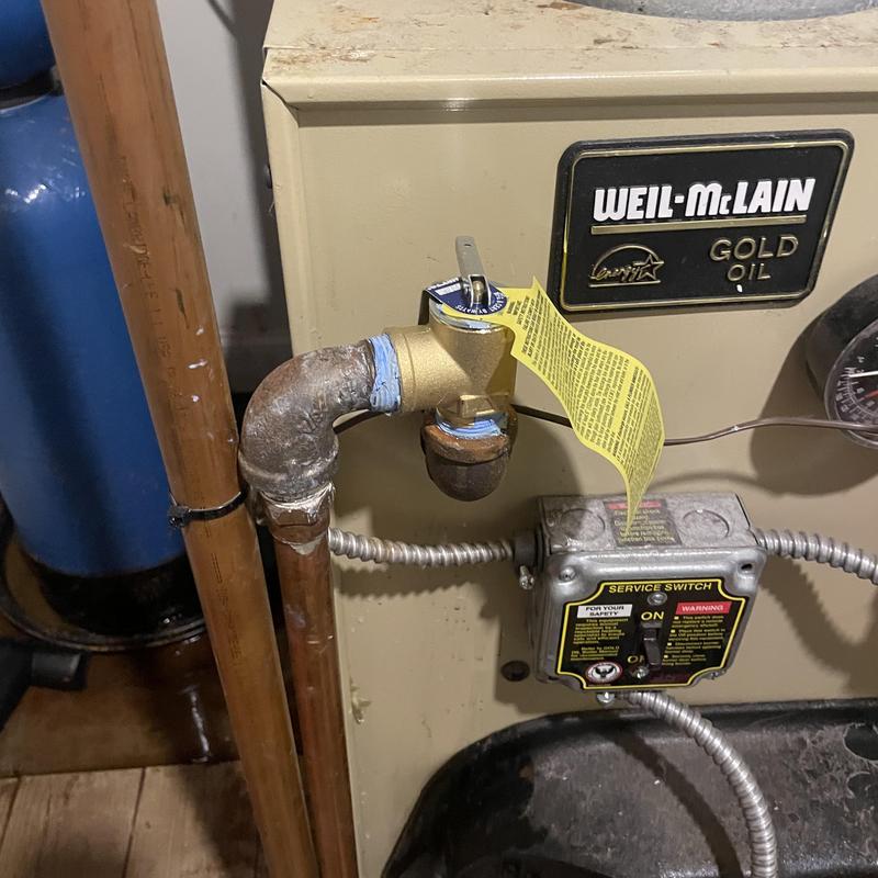 A plumber replaced a leaking pressure relief valve on a boiler and re-pressurized the system to 15 pounds. The repair resolved the leak and restored proper function. This boiler service took place in Pottstown, Pennsylvania.