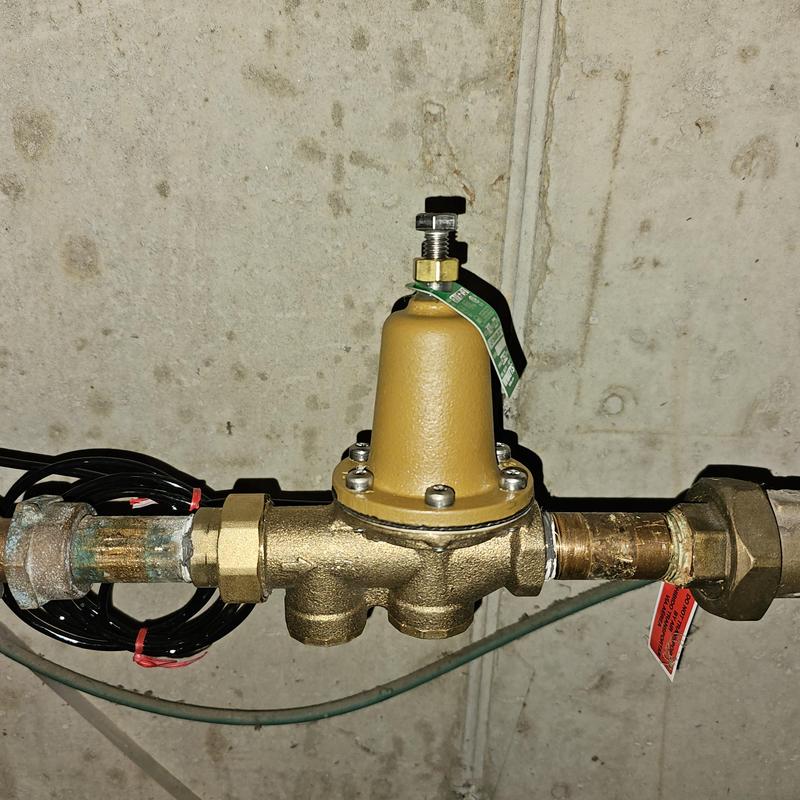 Drainmen Plumbing Inc replaced a faulty pressure-reducing valve (PRV) to fix excessive water pressure exceeding 100 psi in a residence. This repair resolved a water heater leak caused by the high pressure. Work completed in Pottstown, Pennsylvania.