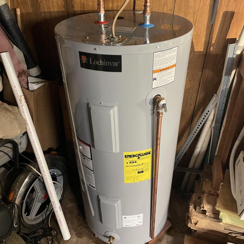 Drainmen Plumbing Inc replaced a 50-gallon electric water heater in Royersford, Pennsylvania. The original unit failed to heat, and the lower element could not be removed. Technicians installed a new Lochinvar model and confirmed proper operation after testing.
