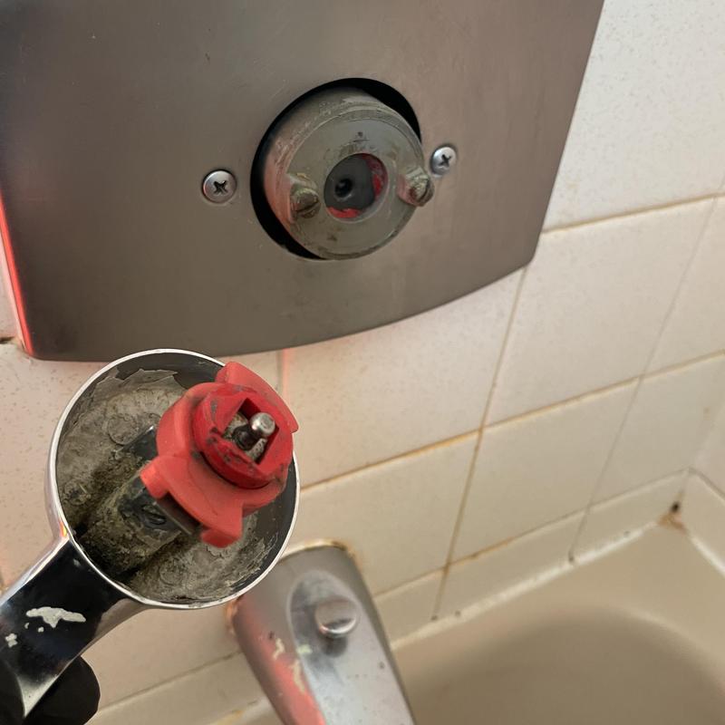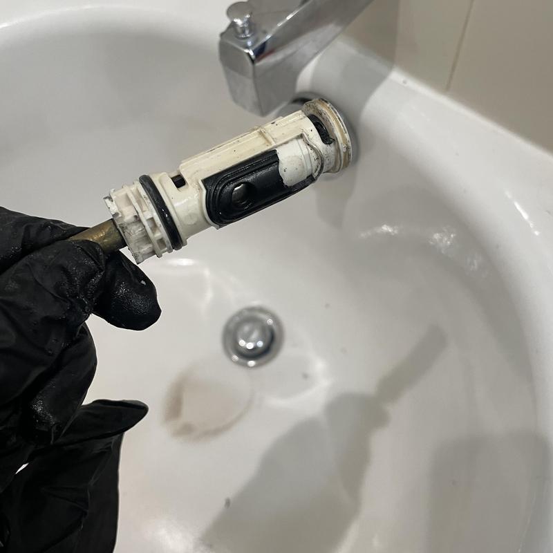 A plumber in Pottstown, Pennsylvania replaced a broken shower handle and a stuck shower cartridge caused by hard water. The technician also removed and replaced a faulty popup assembly in a bathroom sink. All components were tested with running water to confirm proper operation.