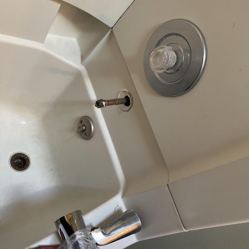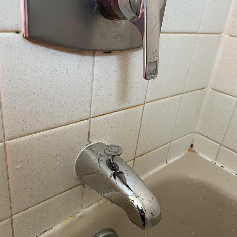 A plumber in Pottstown, Pennsylvania replaced a faulty diverter spout that was causing water to leak behind the bathroom wall and near the kitchen. The leak followed the tub's edge. After installing the new spout, the system was tested and confirmed to be working properly.