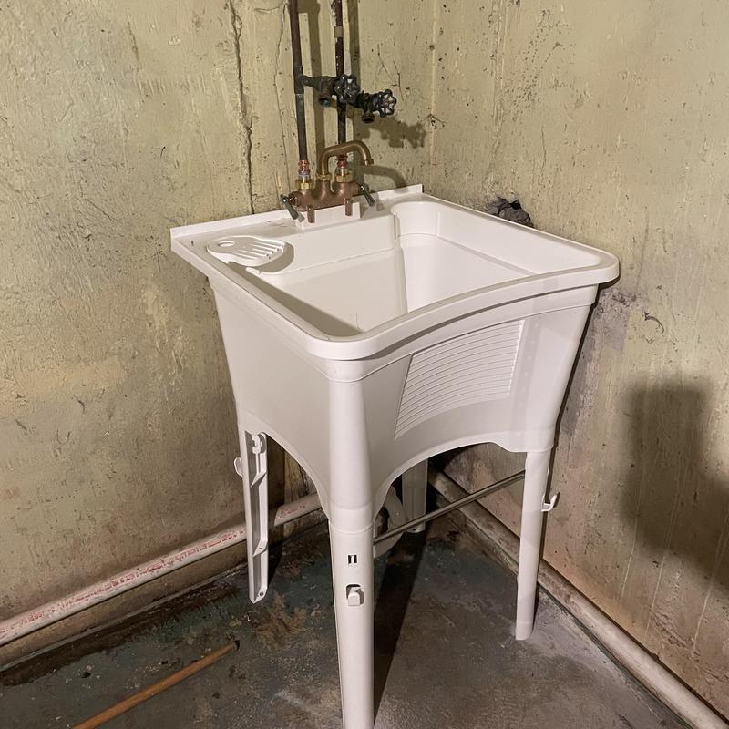 Drainmen Plumbing Inc installed a customer-supplied laundry sink in Pottstown, Pennsylvania. The team updated the drain and water supply lines to fit the new sink and added a faucet provided by the company. All components were tested and confirmed to function properly.