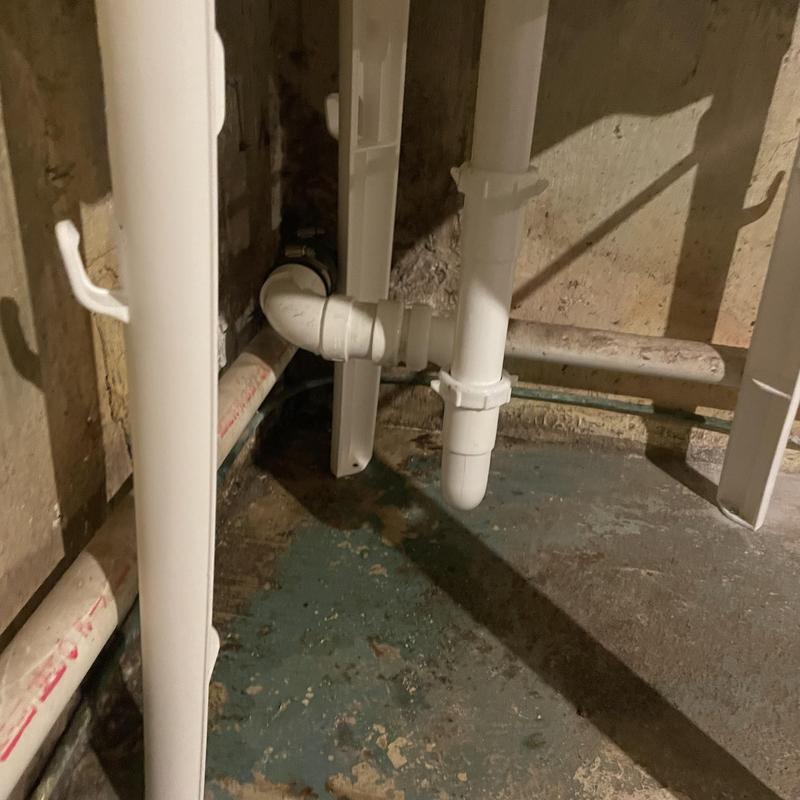 Drainmen Plumbing Inc replaced a leaking basement sink faucet and removed a corroded 1½-inch chrome trap in Norristown, Pennsylvania. Technicians installed a new 1½-inch PVC trap and tested the system for leaks. The repair resolved the issue and restored proper drainage.