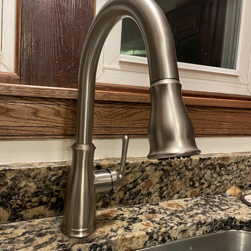 Drainmen Plumbing Inc installed a customer-supplied Moen kitchen faucet and completed a successful water test in Gilbertsville, Pennsylvania. The installation ensured proper function and leak-free connections.