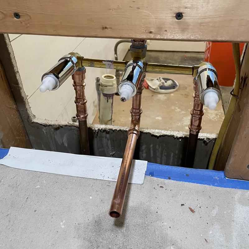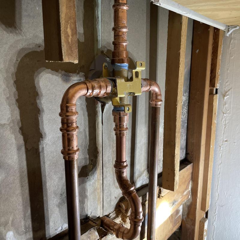Drainmen Plumbing Inc installed a Glacier Bay shower valve as a rough-in for a homeowner in Pottstown, Pennsylvania. The customer supplied the valve, and the plumber completed the initial installation. The customer will handle the finishing trim.