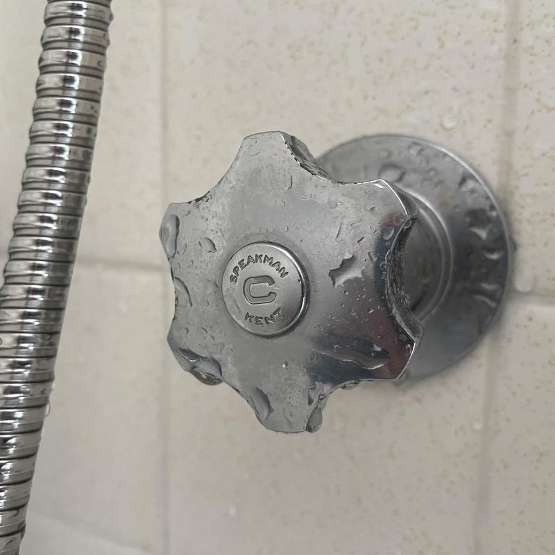 Drainmen Plumbing Inc repaired a non-shutting 1960s Speakman Kent two-handle shower valve in Pottstown, Pennsylvania. The team removed the handle, repaired the valve internally, and replaced the gaskets. The shower shut off properly after testing.