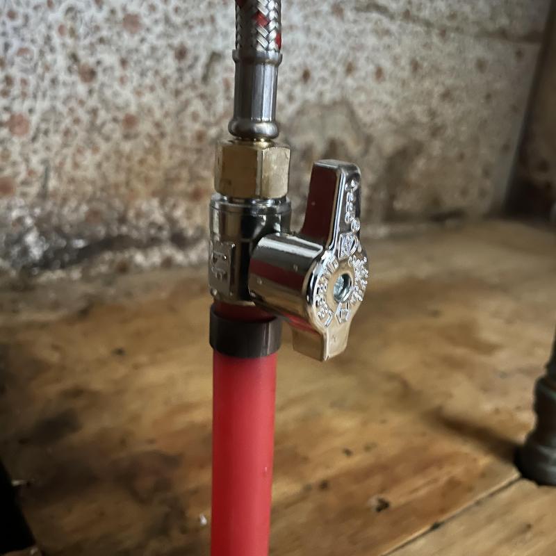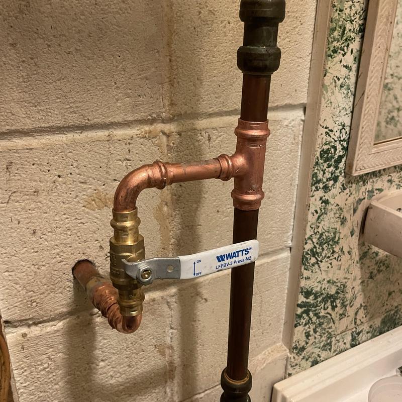 Drainmen Plumbing Inc installed two shut-off valves on a malfunctioning shower line in Pottstown, Pennsylvania. The customer had a hot water faucet that would not close due to stripped valve threads. Plumbers isolated the line to allow future repair without cutting water to the entire home. System tested and operating correctly.
