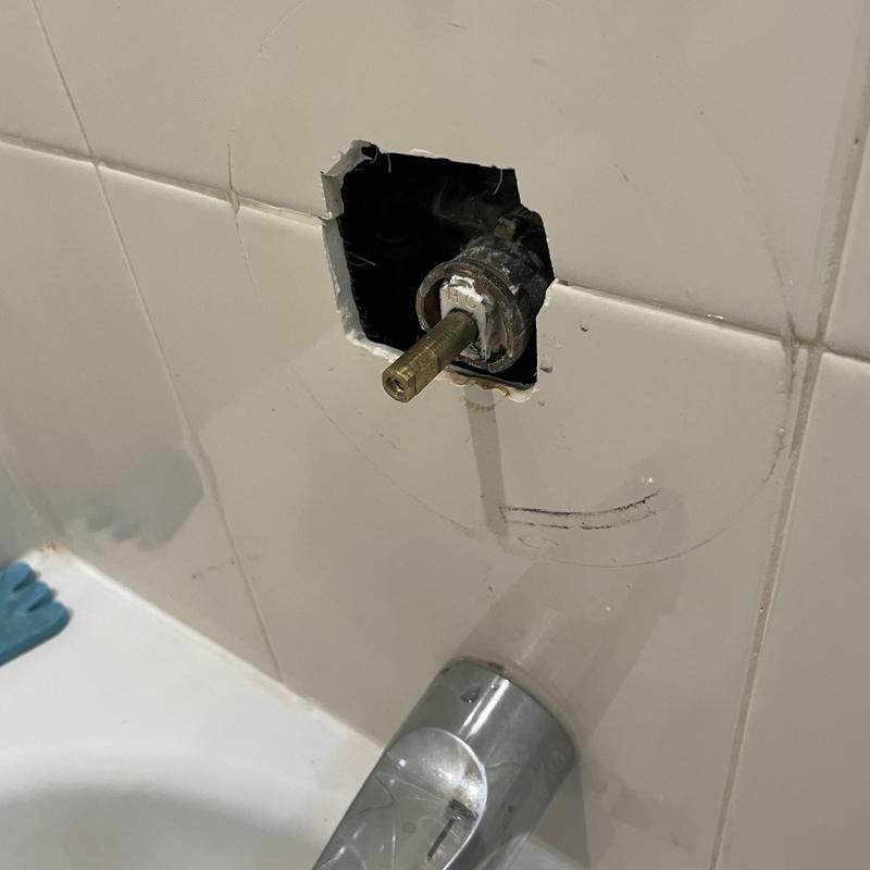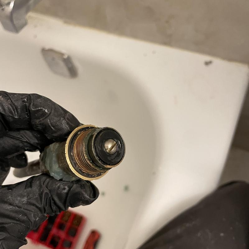 A plumber in Royersford, Pennsylvania fixed a bathtub faucet that was continuously running. After removing the access panel, the technician found a screw lodged in the cold side cartridge, preventing proper shutoff. The plumber removed the obstruction, reassembled the faucet, and confirmed proper water flow by conducting multiple tests.