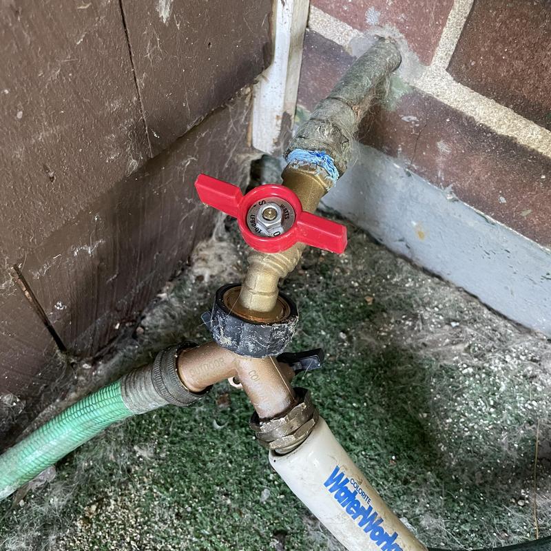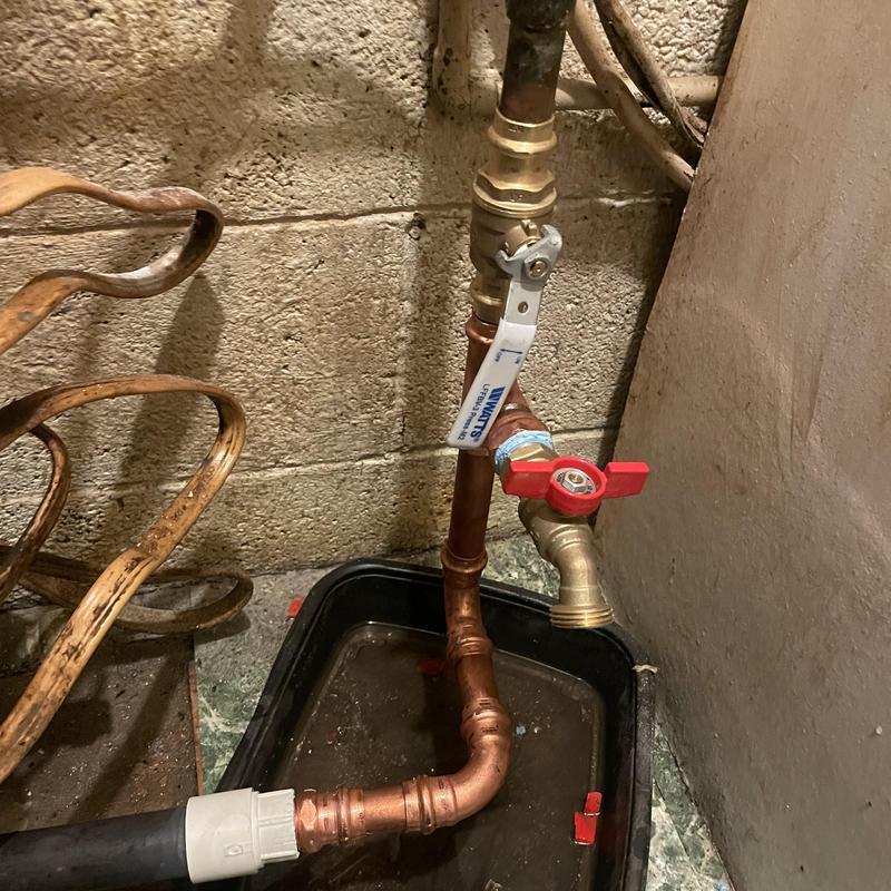 Drainmen Plumbing Inc installed a frost-free hose bib and replaced a corroded main shut-off valve with a new 3/4" ball valve. The team also replaced the cold water supply valve for the laundry machine. All plumbing work was tested and confirmed to function properly in Pottstown, Pennsylvania.