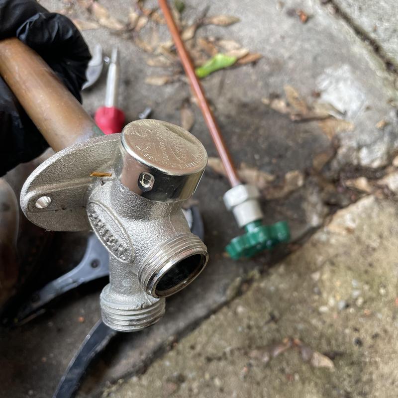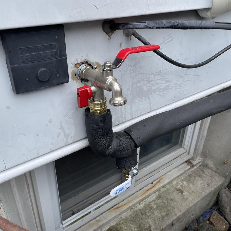 Drainmen Plumbing Inc replaced a split hose bib in Pottstown, Pennsylvania. The technician installed a new Prier 10 frost-free model, sealed a wall gap with silicone, adjusted the bib for better drainage, and repositioned insulation to prevent future freezing. The system tested successfully after the repair.