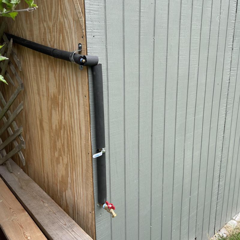 Drainmen Plumbing Inc installed a dual hose bib at the front of a home in Pottstown, Pennsylvania, and added a new rear hose bib using 40 feet of PEX piping. The team relocated a shut-off valve for easier access, replaced a water filter spout, and insulated exterior lines with Armaflex for added protection.