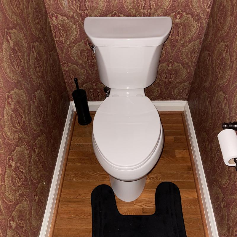 Drainmen Plumbing Inc replaced a leaking second-floor toilet in Pottstown, Pennsylvania. The team removed the old unit due to its poor condition and installed a new American Standard round bowl toilet. The installation resolved the leak and restored full function to the bathroom.