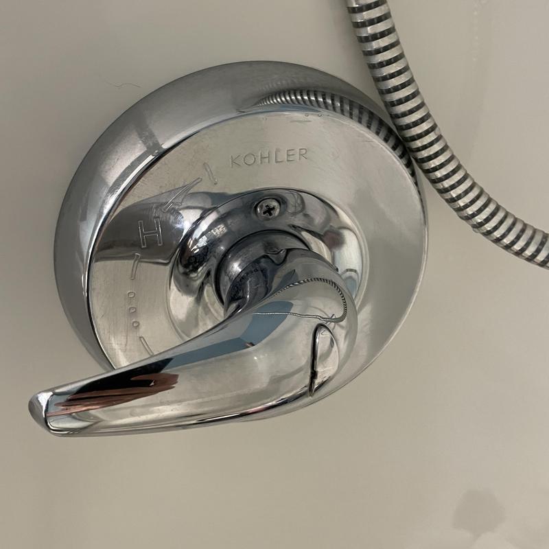 A plumber replaced a leaking first-floor shower sprayer hose in Collegeville, Pennsylvania. The contractor special-ordered a 38” x 12” hose to match the existing shower assembly. After installation, they tested the system to confirm proper function.