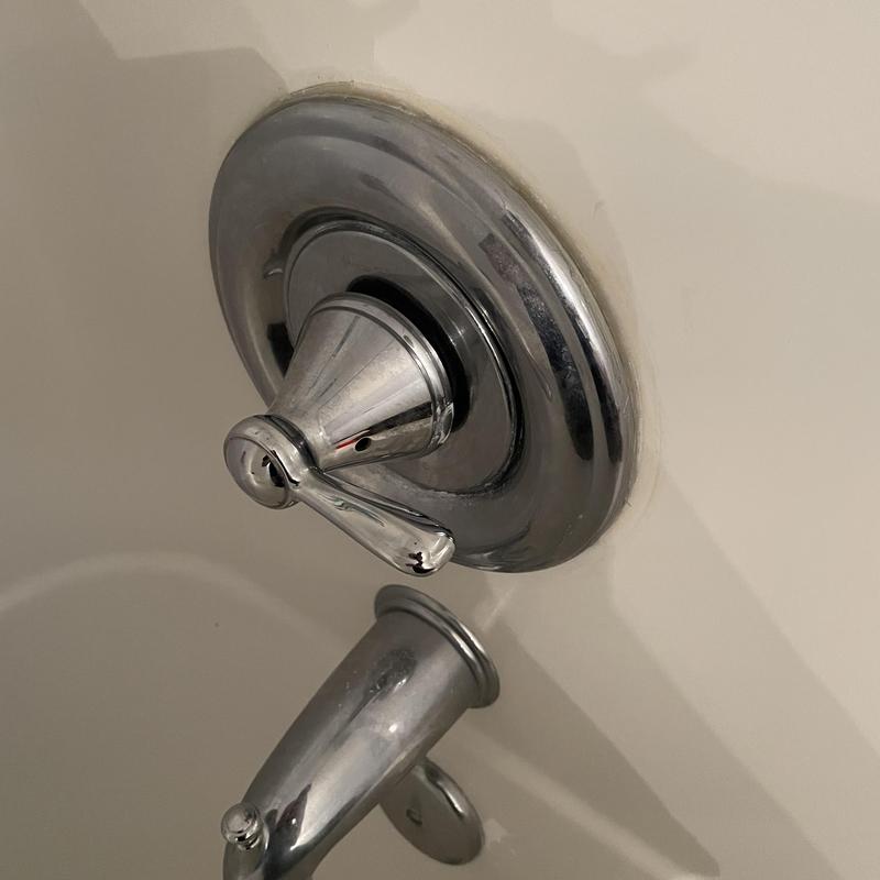 A plumber repaired a leaking shower faucet in a master bathroom in Royersford, Pennsylvania. The service included replacing a damaged screw and gasket on the valve stem and resealing the escutcheon to stop water leaks. After testing, the faucet operated correctly with no further issues.