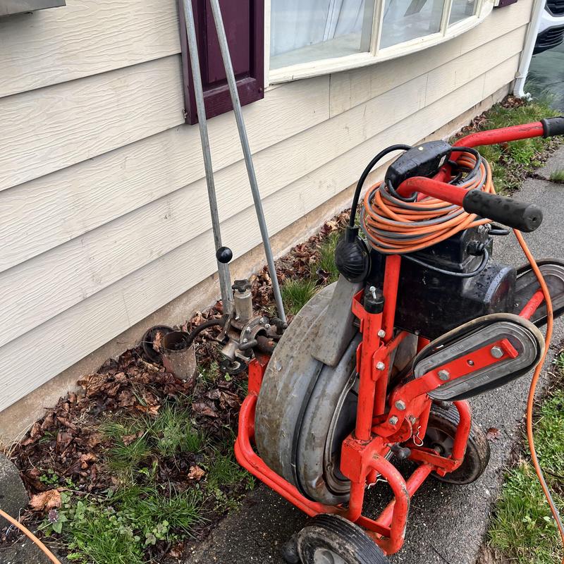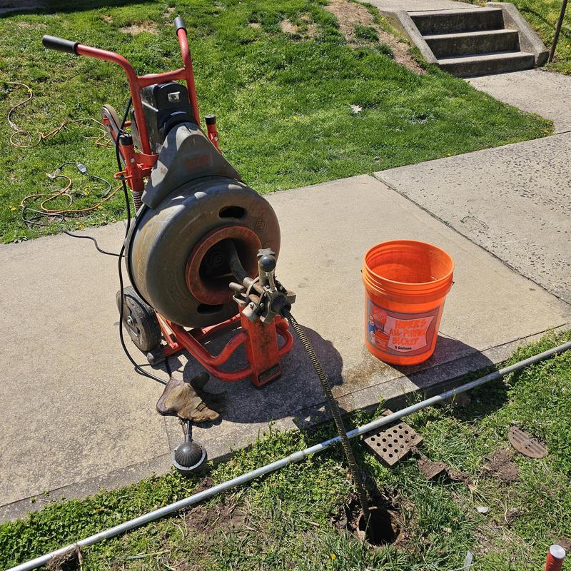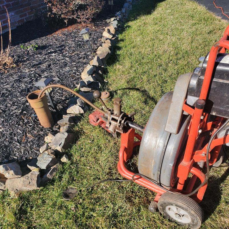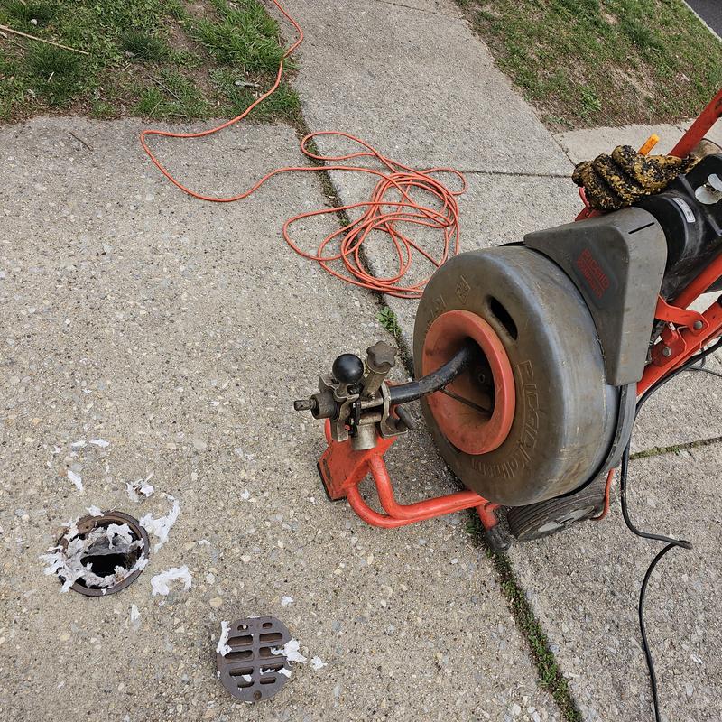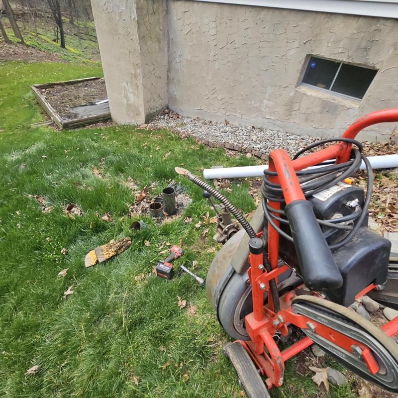 Drainmen Plumbing Inc cleared a main sewer clog at a home in Norristown, Pennsylvania. The team used a snake machine through the backyard cleanout to restore flow. They confirmed the fix by running water and flushing to ensure proper drainage.