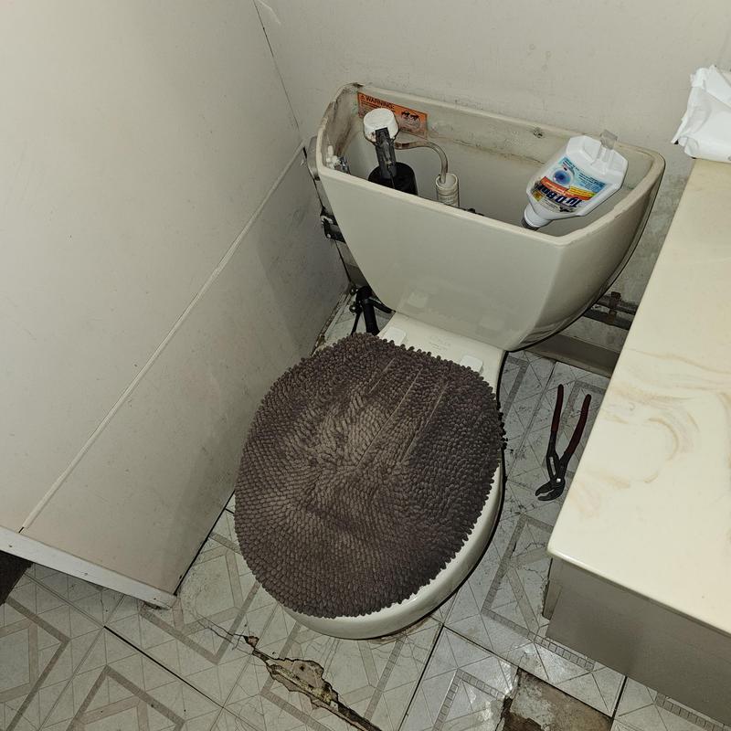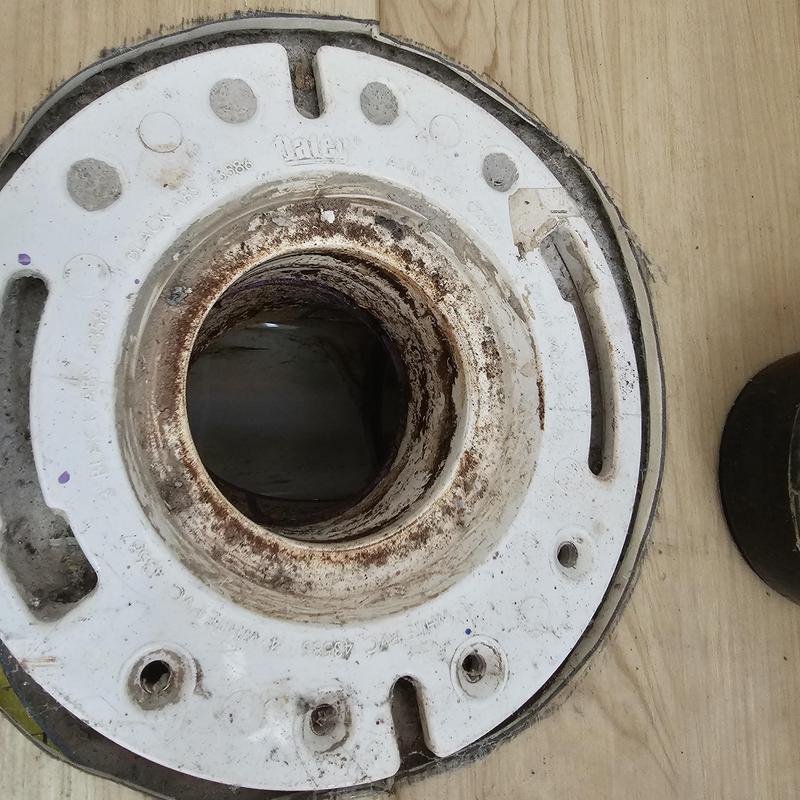 A plumber in Pottstown, Pennsylvania removed a toilet to locate a blockage. They found a water bottle lodged in the flange and cleared the obstruction. A camera inspection showed no further issues. The toilet was reinstalled, but a leak persisted. A follow-up visit was planned after ceiling access could be arranged.