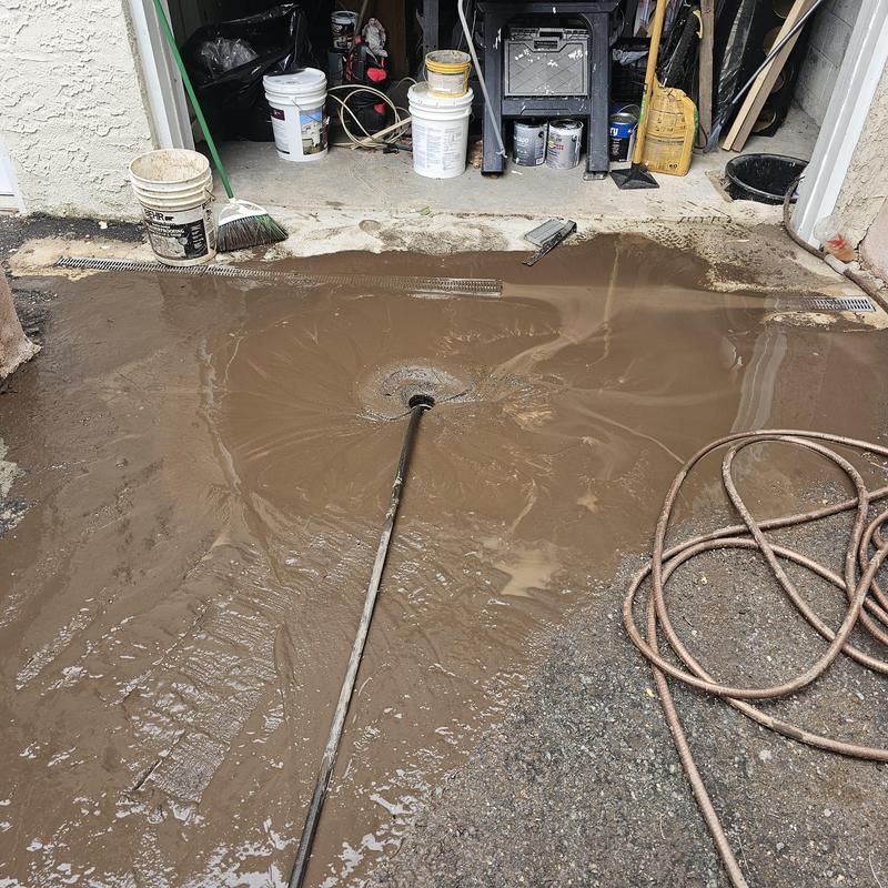 Drainmen Plumbing Inc cleared a clogged garage drain in Pottstown, Pennsylvania. Technicians used a jetter and 200 gallons of water to remove sand and dirt buildup. They restored full drainage flow and confirmed the outlet behind the shed was clear and functioning properly.
