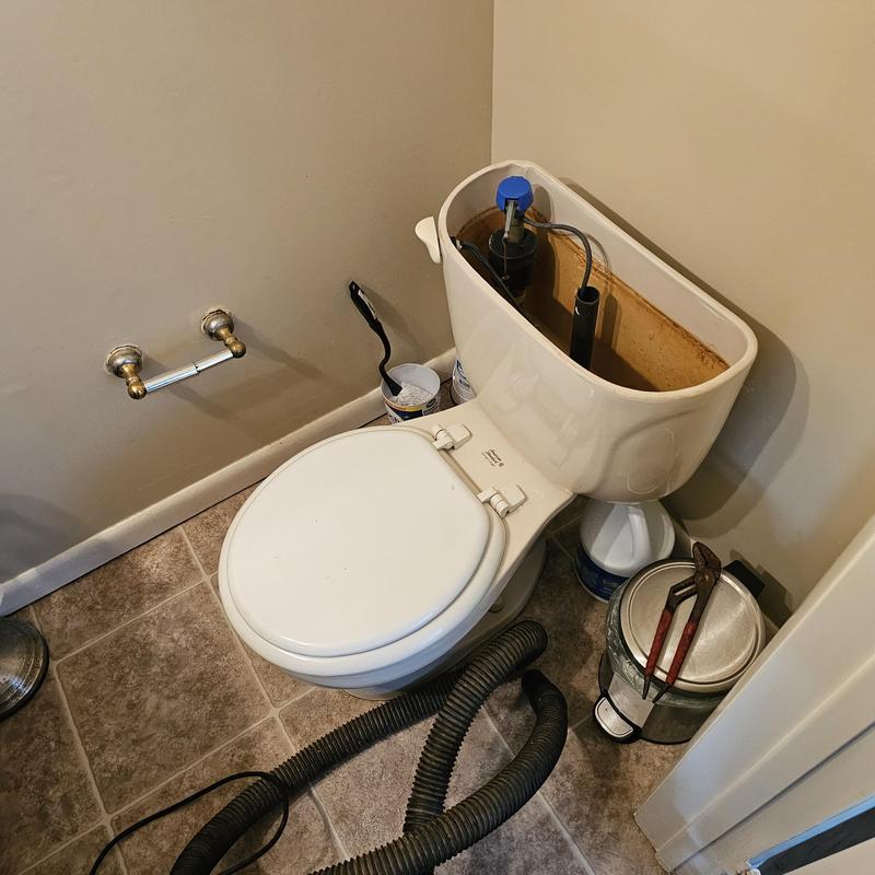 A plumber in Royersford, Pennsylvania removed a clogged toilet and cleared a blocked interior drain line using a snake. The blockage caused water to overflow in the first-floor bathroom whenever fixtures were used. After clearing the line, the plumber ran water to confirm normal drainage throughout the system.
