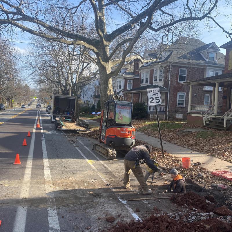 Drainmen Plumbing Inc repaired a damaged sewer line by excavating part of the street in Pottstown, Pennsylvania. The crew located the issue underground and restored the line to working condition. This service ensured proper sewer flow and prevented further disruption to the property and nearby roadway.