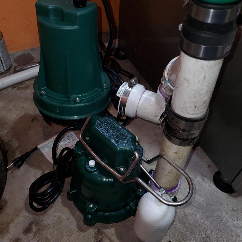 Drainmen Plumbing Inc installed a new sump pump and backup pump using a Zoeller kit in a basement pit. They removed the previous system after repeated failures. This sump pump replacement service was completed in Pottstown, Pennsylvania.